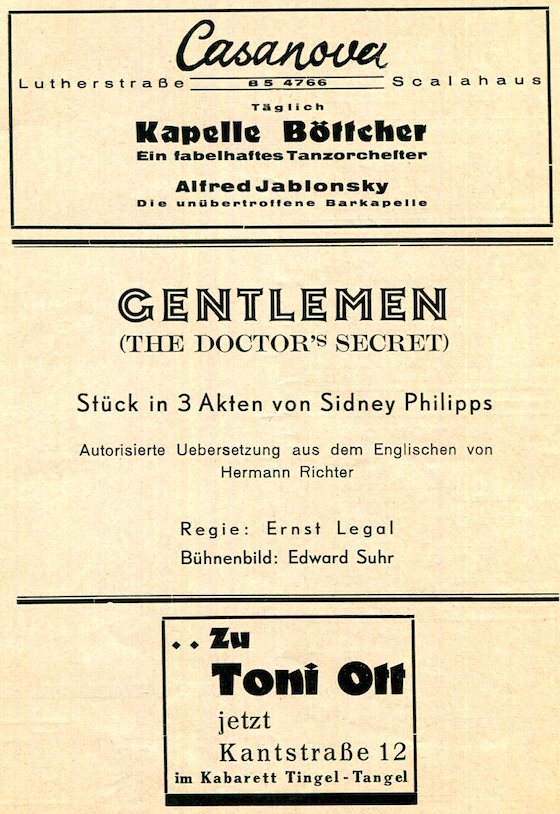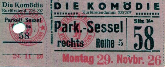 Germany Berlin Entertainment Die Komödie Theater Ticket 1926