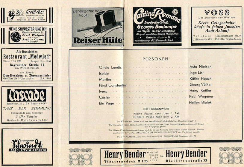 Germany Berlin Entertainment Die Komödie Theater Program 1938 Inside 3