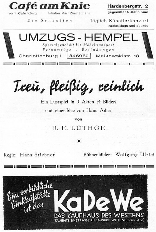 Germany Berlin Entertainment Die Komödie Theater Program 1938 Inside 1