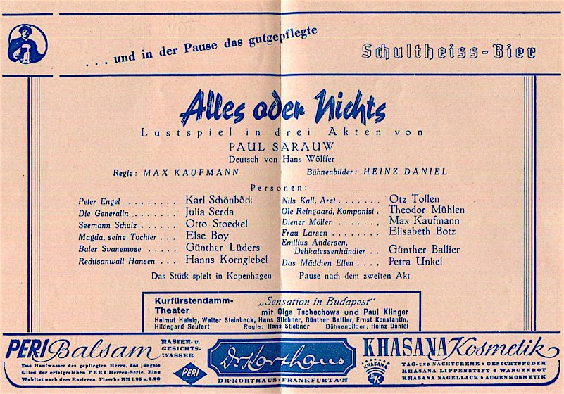Germany Berlin Entertainment Die Komödie Theater Program Alles Oder Nichts 1942 Front