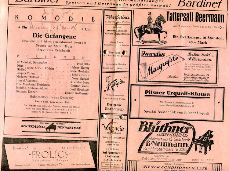 Germany Berlin Entertainment Die Komödie Theater Program Die Gefangene Max Reinhardt 1926 Front