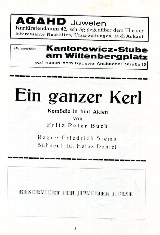 Germany Berlin Entertainment Die Komödie Theater Program Ein Ganzer Kerl 1938 Inside 3