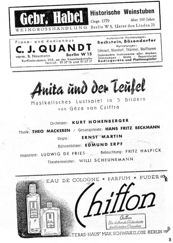 Germany Berlin Entertainment Komödienhaus Program 1941 Back