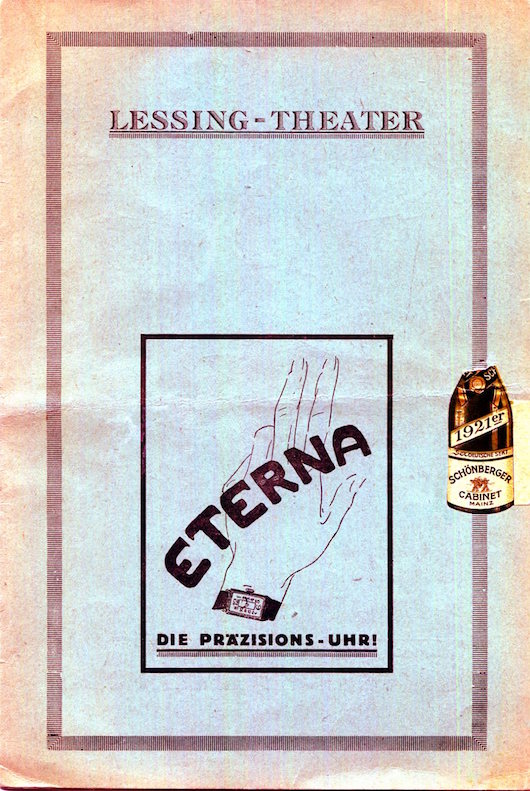 Germany Berlin Entertainment Lessing Theater Program 1930 Front