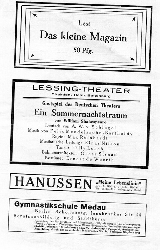 Germany Berlin Entertainment Lessing Theater Program Ein Sommernachtstraum 1930 Inside 1