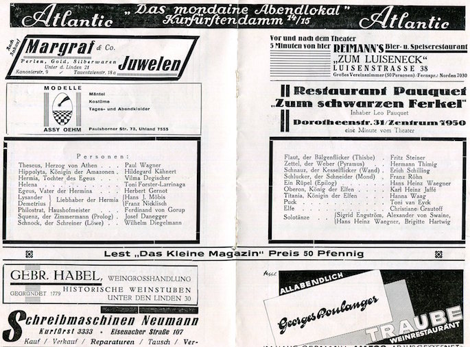Germany Berlin Entertainment Lessing Theater Program Ein Sommernachtstraum 1930 Inside 4