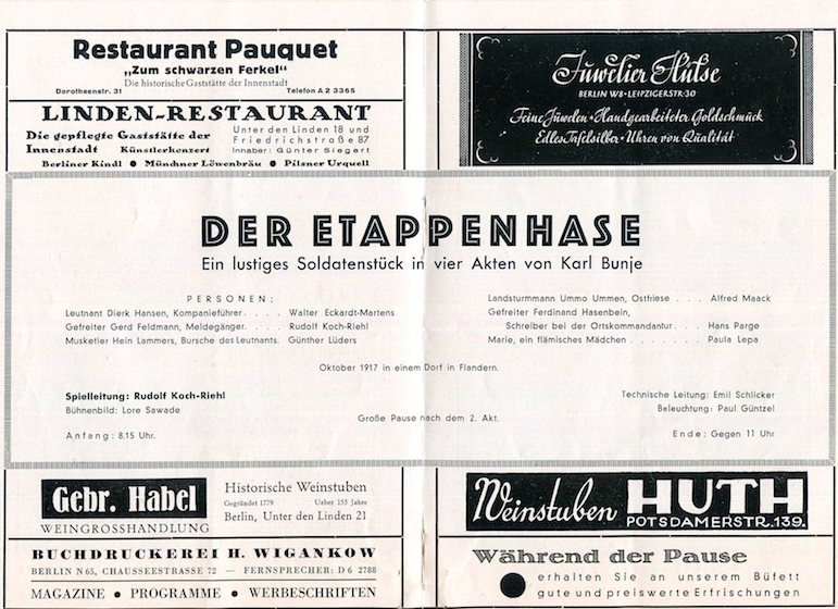 Germany Berlin Entertainment Lessing Theater Program Etappenhase 1934-1935 Inside 2