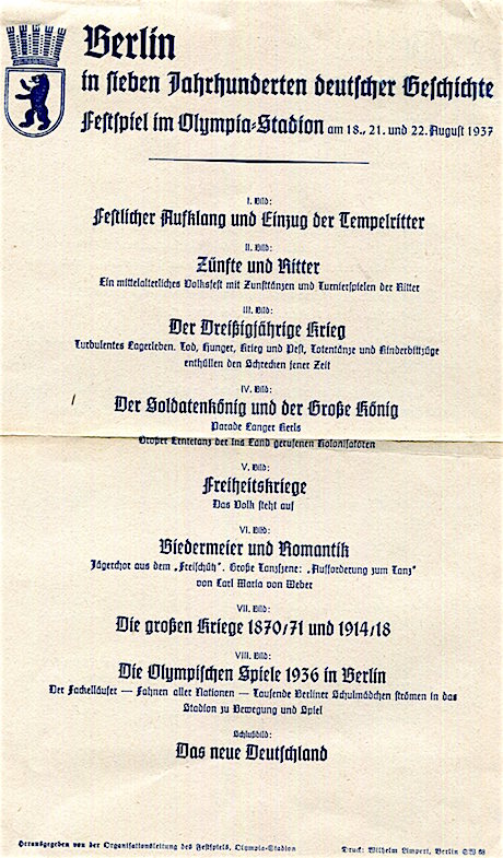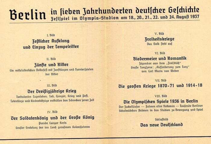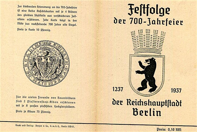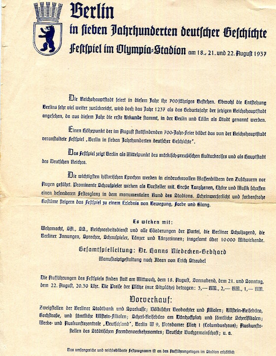 Germany Berlin Entertainment Olympic Stadium 700 Year Anniversary Events Leaflet 1937 Front