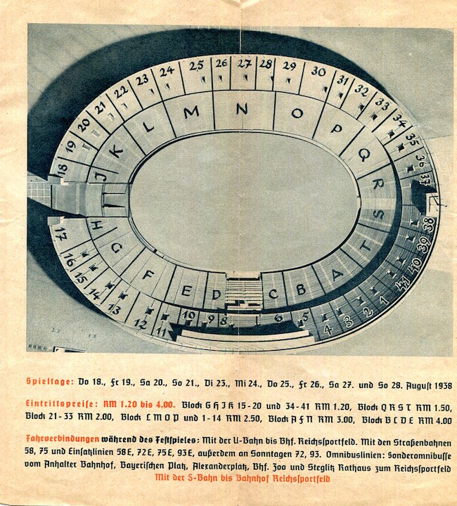 Germany Berlin Entertainment Olympic Stadium Program 1938 Inside