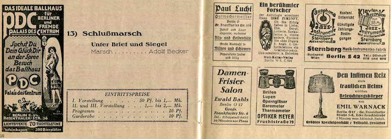 Germany Berlin Entertainment Plaza Variety Program 1933-2 Inside 2