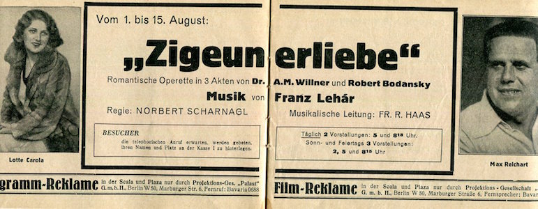 Germany Berlin Entertainment Plaza Variety Program 1929-2 Front