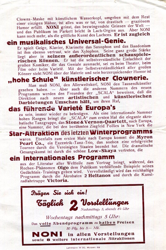 Germany Berlin Entertainment Night Club Scala Program 1920 November Inside 2