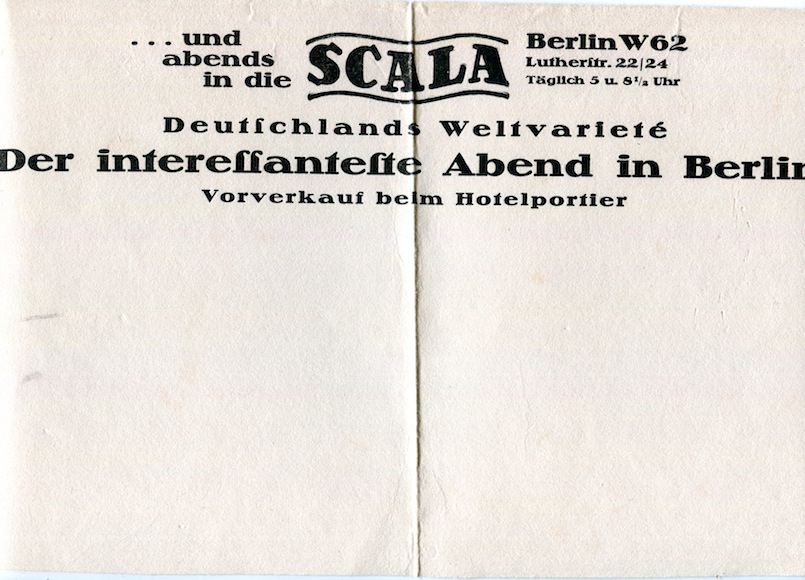 Germany Berlin Entertainment Night Club Scala Leaflet Toto 1930