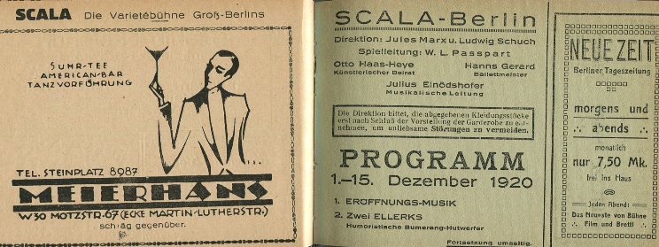 Germany Berlin Entertainment Night Club Scala Program 1920 November Front