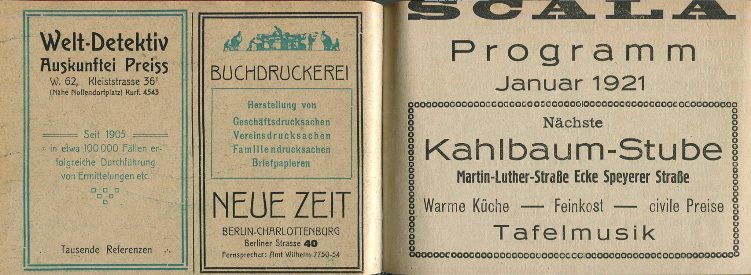 Germany Berlin Entertainment Night Club Scala Program 1921 January Inside 2