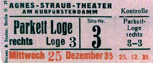 Germany Berlin Entertainment Agnes Straub Theater Ticket 1935