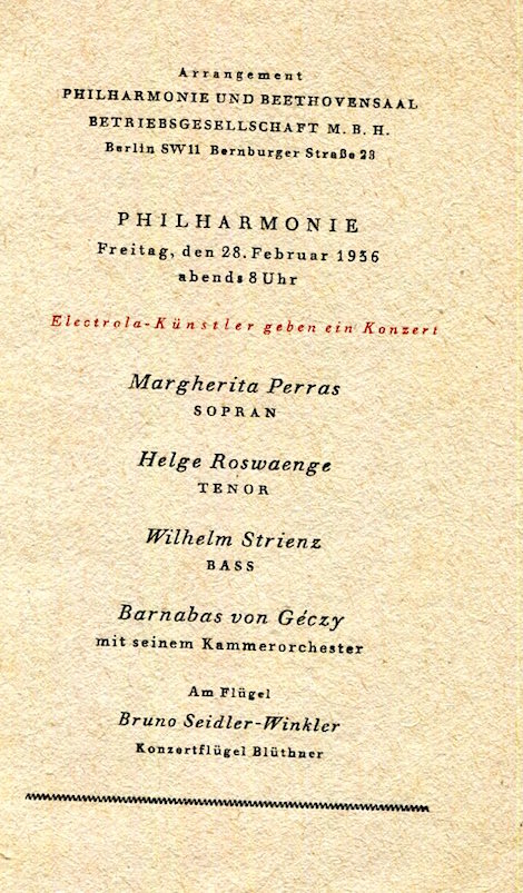 Germany Berlin Entertainment Beethoven Saal Program Electrola Künstler 1936 Front