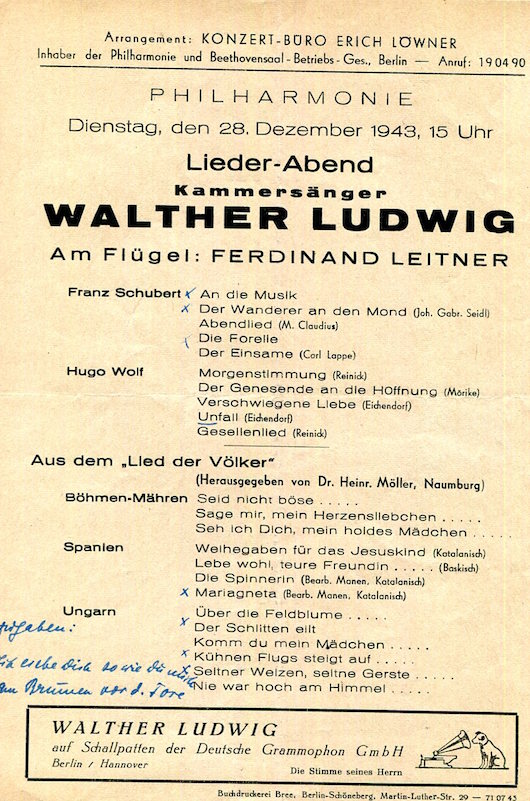 Germany Berlin Entertainment Beethoven Saal Program Philharmonie 1943