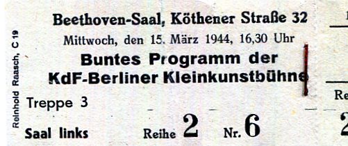 Germany Berlin Entertainment Beethoven Saal Ticket 1944