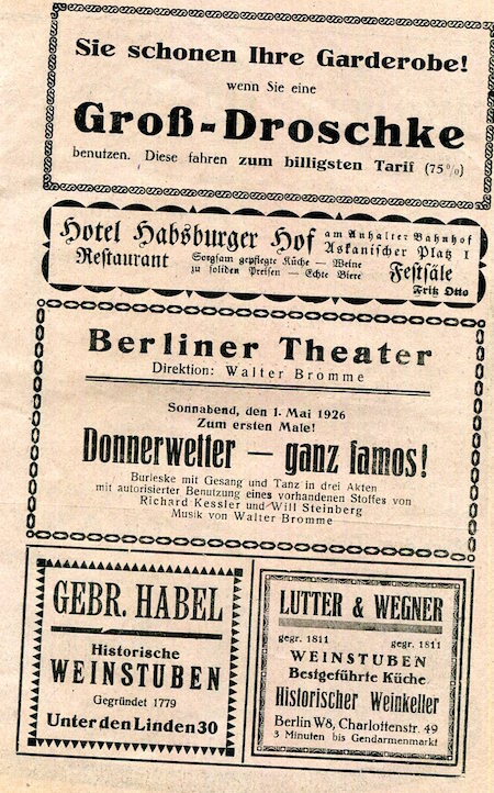Germany Berlin Entertainment Berliner Theater Program Donnerwetter 1926 Front