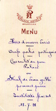 Belgium Brussels Hotel De L Esperance Menu 1924 Front