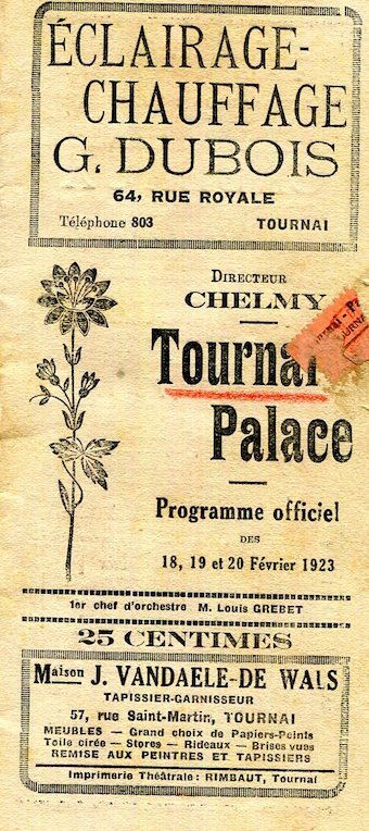 Belgium Entertainment Tournai Palace Program 1923 Front