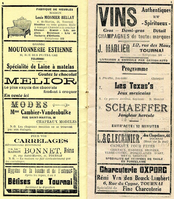 Belgium Entertainment Tournai Palace Program 1923 Inside