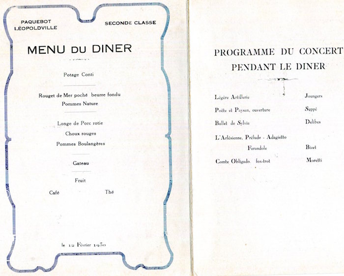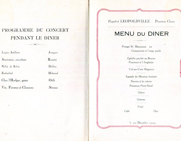 Belgium Transport Steamship CMB SS Leopoldville Menu 1929-4 Font