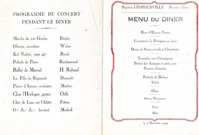 Belgium Transport Steamship CMB SS Leopoldville Menu 1929-3 Inside