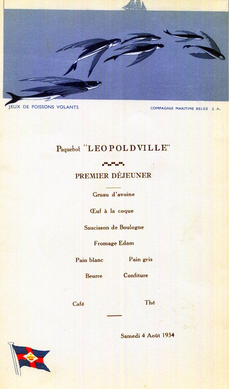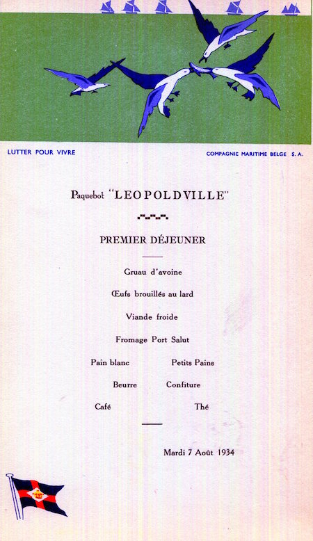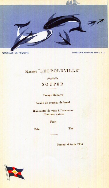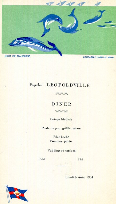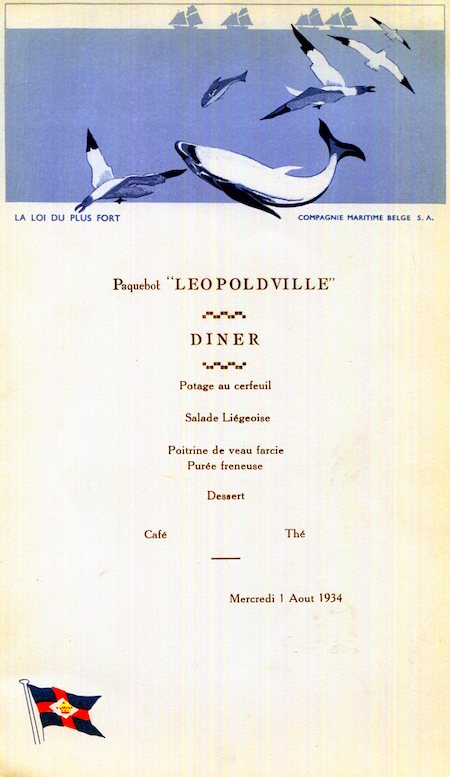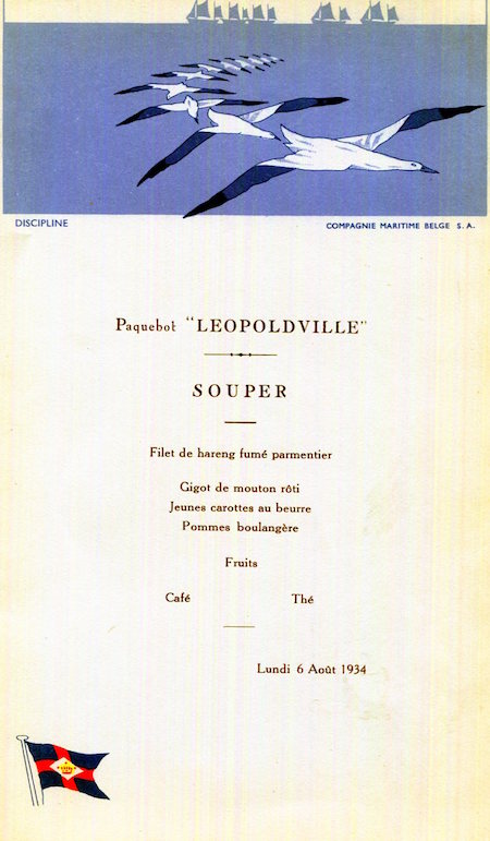 Belgium Transport Steamship CMB SS Leopoldville Menu 1934-6