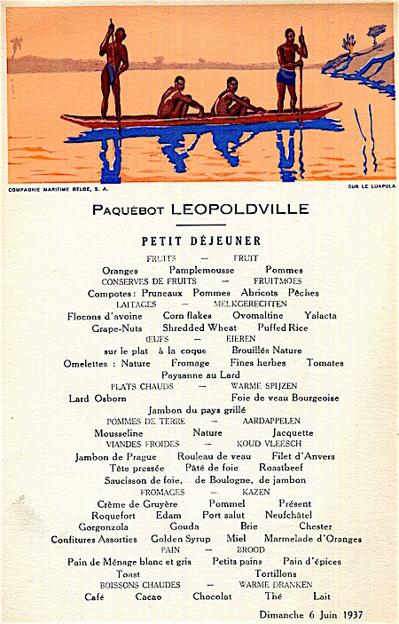 Belgium Transport Steamship CMB SS Leopoldville Menu 1937-3