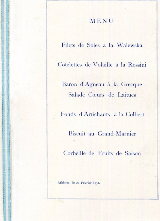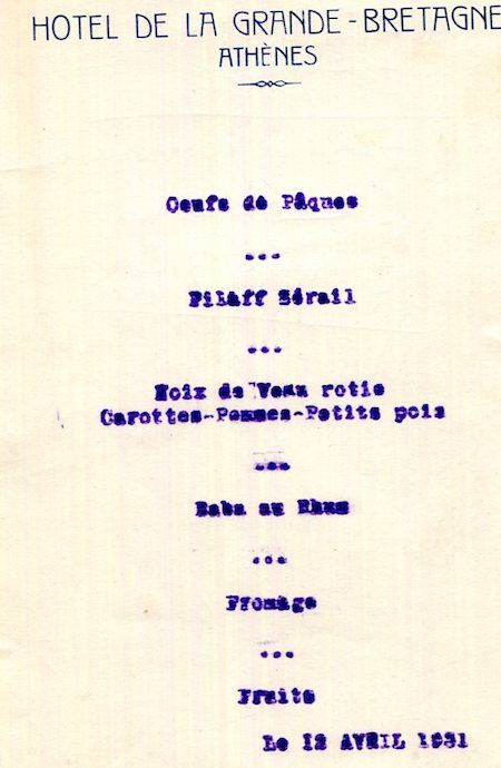 Greece Athens Hotel Grande Bretagne Menu 1931