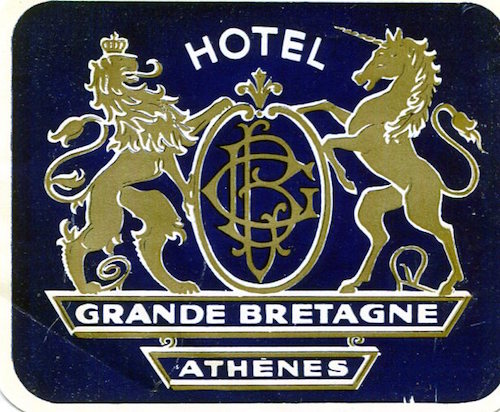 Greece Athens Hotel Grande Bretagne Luggage Label 1930-2