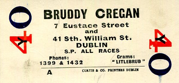 Ireland Dublin Entertainment Phoenix Park Club Race Betting Ticket Bruddy Cregan 1927