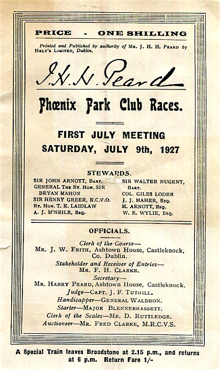 Ireland Dublin Entertainment Phoenix Park Club Race Program 1927 Front