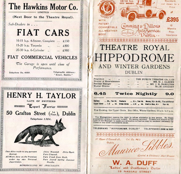 Ireland Dublin Entertainment Theater Royal Hippodrome Program 1922 Inside 2