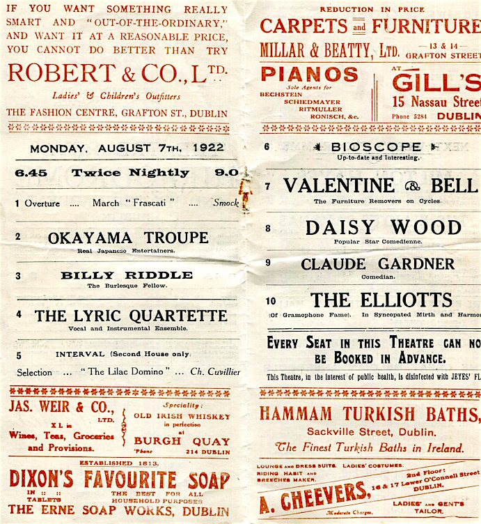 Ireland Dublin Entertainment Theater Royal Hippodrome Program 1922 Front