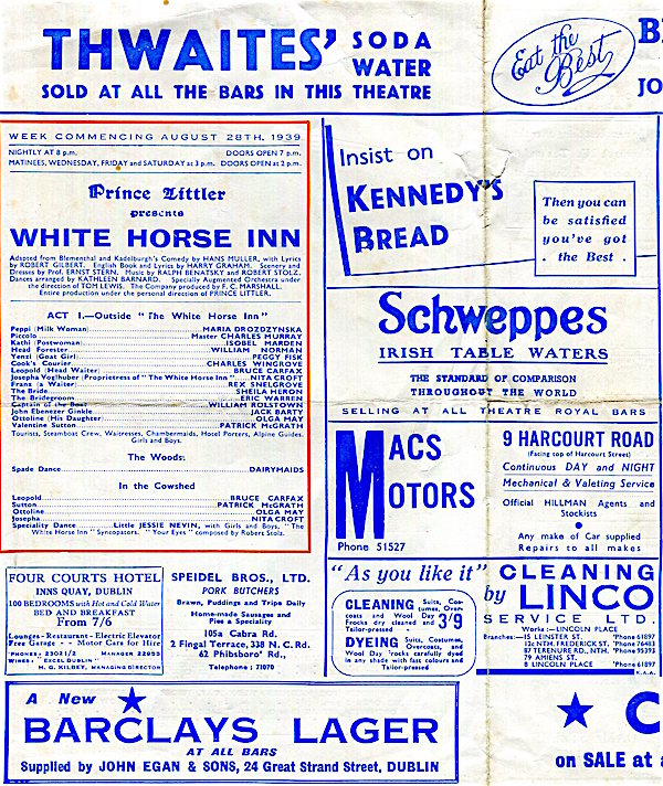 Ireland Dublin Entertainment Theater Royal Program 1939 Inside 1