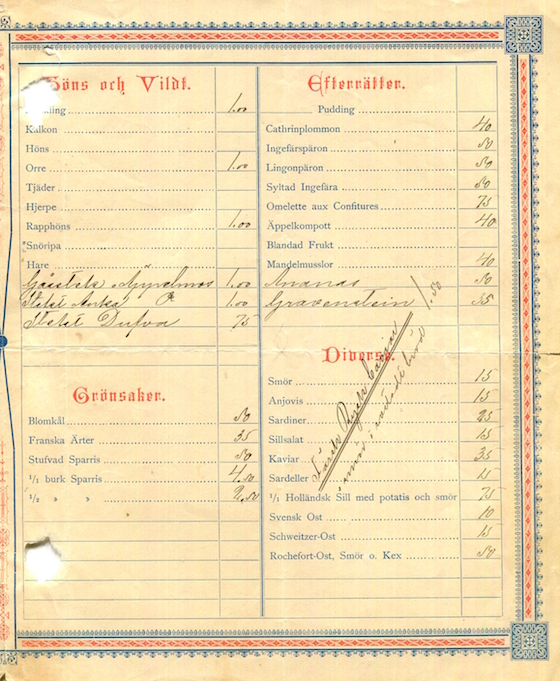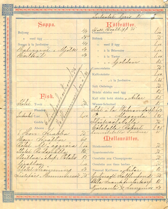 Sweden Carlskrona Hotel Stadshotellet Menu 1896 Inside 2