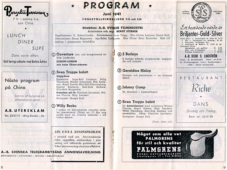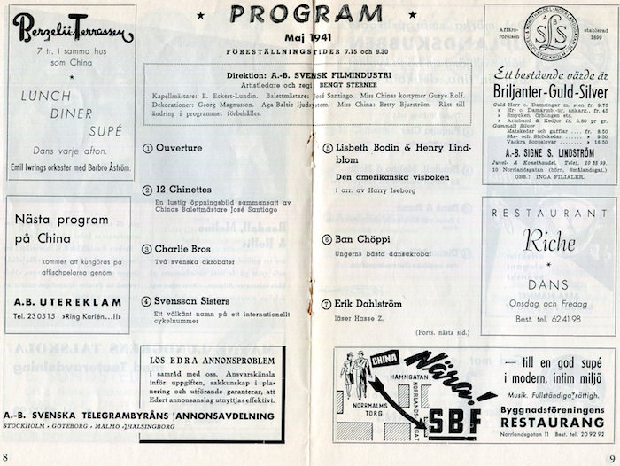 Sweden Stockholm Entertainment China Variete Program 1941-1 Inside 1