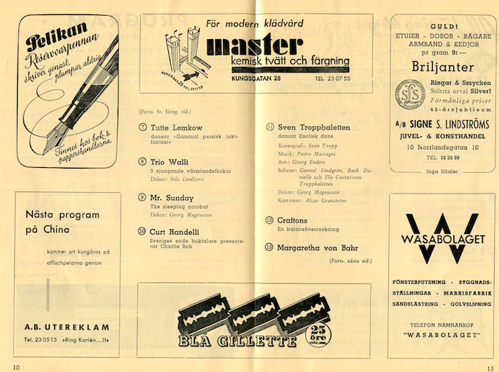 Sweden Stockholm Entertainment China Variete Program 1944 Inside 2