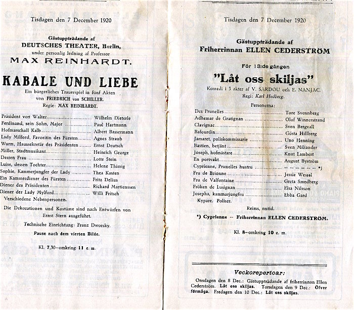 Sweden Stockholm Entertainment De Kungliga Teatrarnas Program Max Reinhart 1920 Front