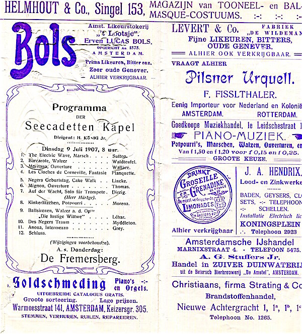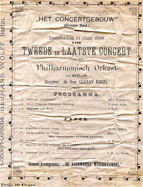 The Netherlands Amsterdam Entertainment Concert Hall Program 1888