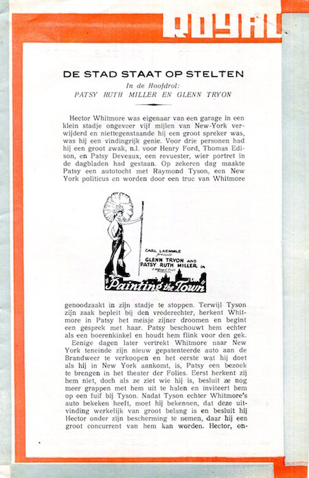 The Netherlands Amsterdam Entertainment Cinema Royal Program De Stad Statt Op Stelten 1928 Front