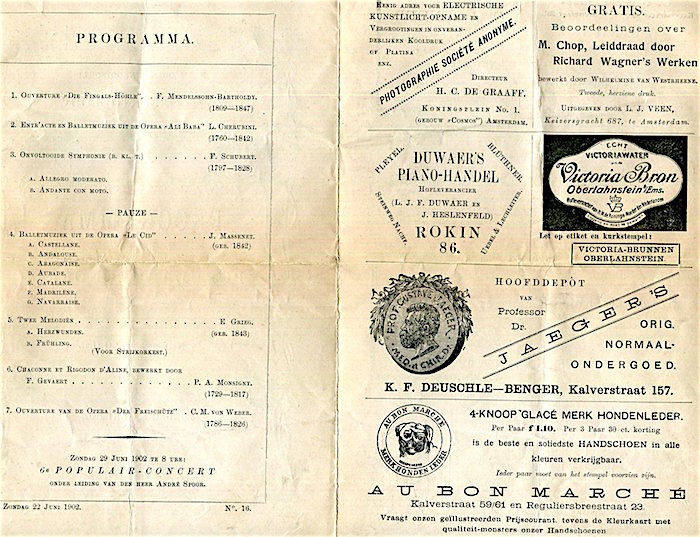 The Netherlands Amsterdam Entertainment Concert Hall Program 1902 Front