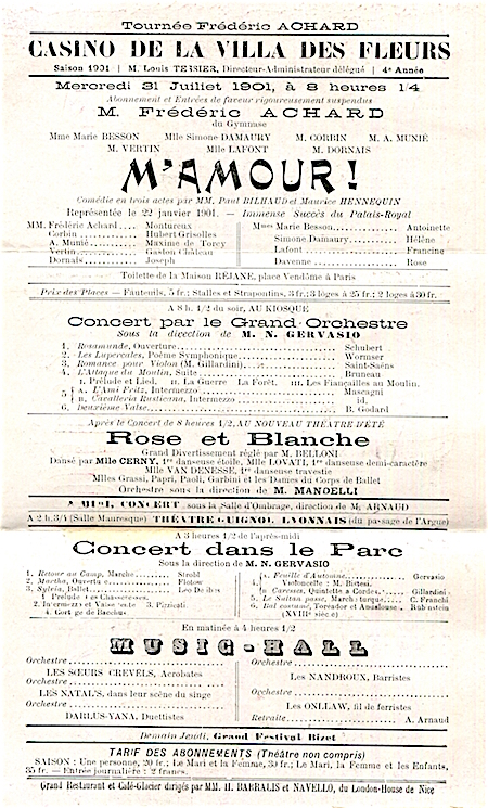 France Aix Les Bains Entertainment Casino De La Villa Des Fleurs Program 1901 Inside