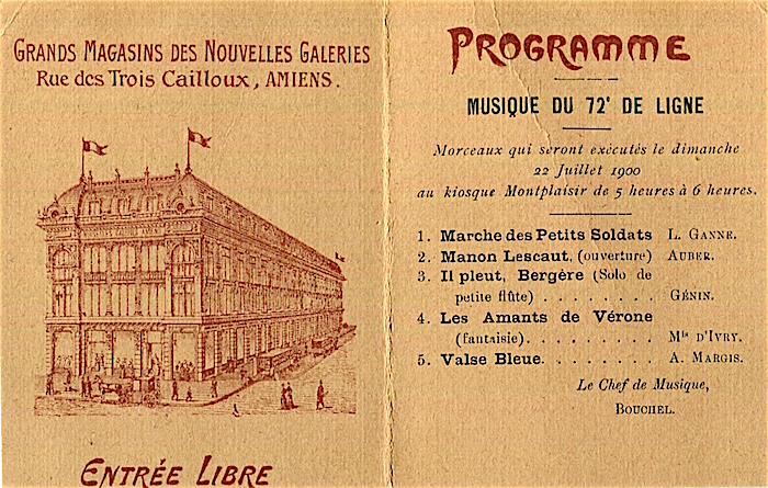 France Amiens Entertainment Grands Magasins Des Nouvelles Galeries Program 1900 Inside