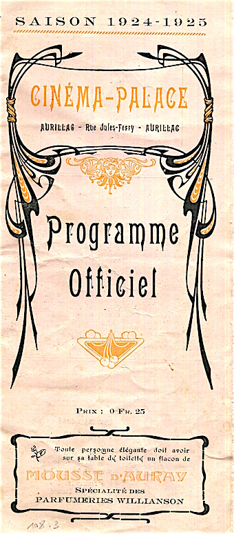 France Aurillac Entertainment Cinema Palace Program 1924 1925 Front