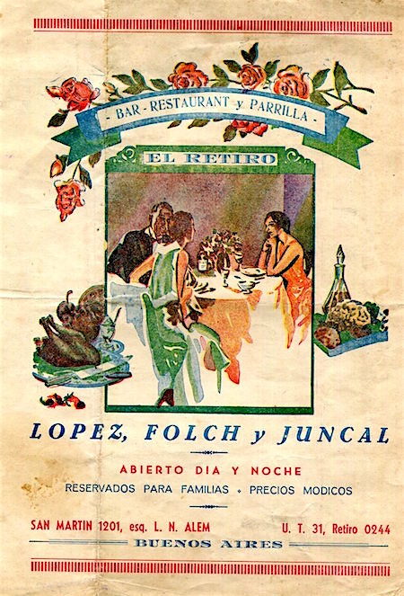 Argentina Buenos Aires El Retiro Restaurant Menu 1938 Front