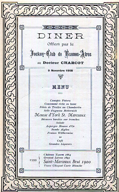 Argentina Buenos Aires Jockey Club Menu 1908 Front